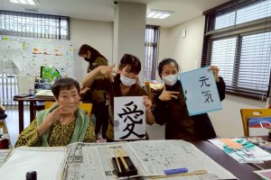 新年を迎え、いろどり寝屋川高宮では利用者様と職員で書初めを行いました😊